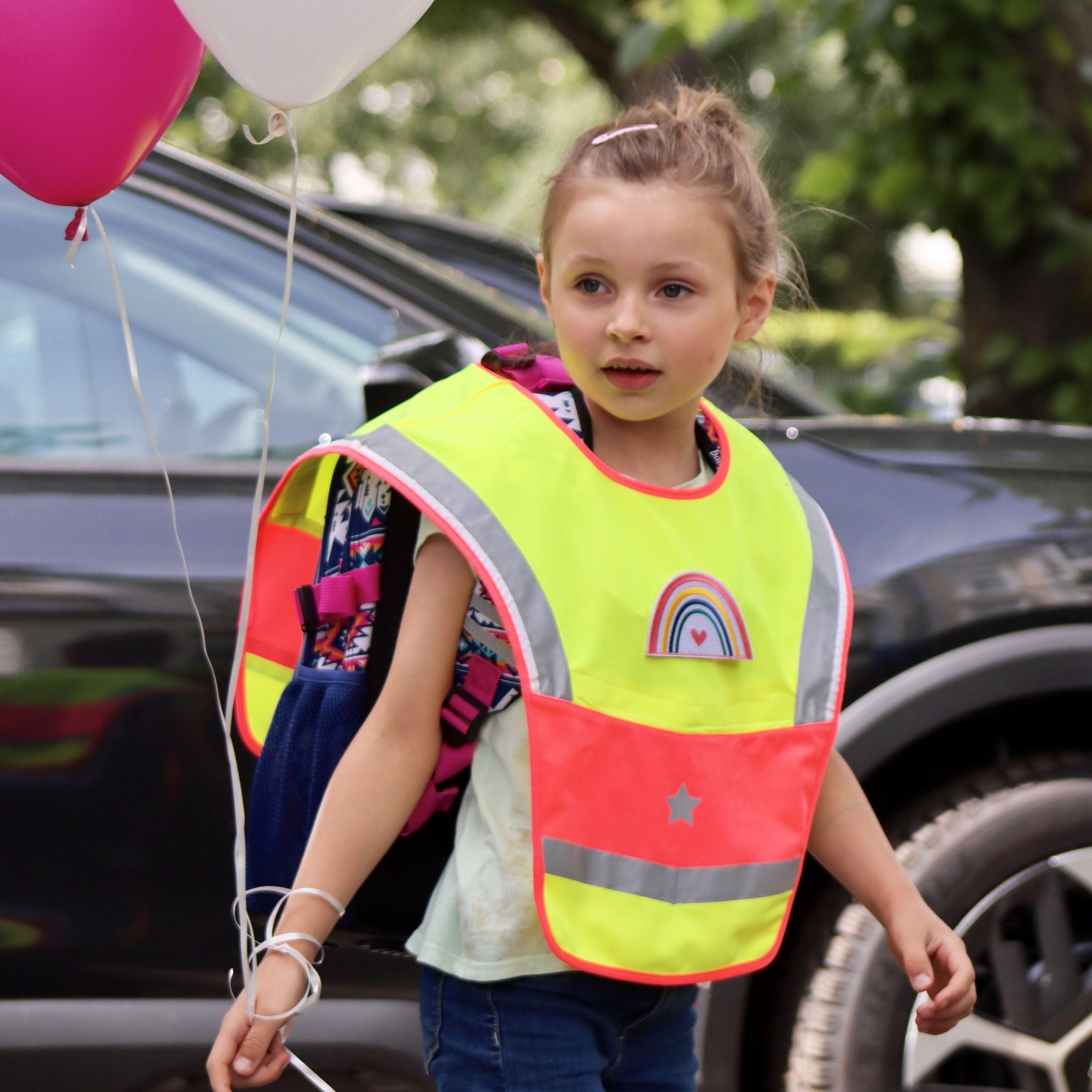 Es sorgt dafür, dass dein Kind im Straßenverkehr frühzeitig gesehen wird – bei Sonne, Regen, Dämmerung oder Dunkelheit.